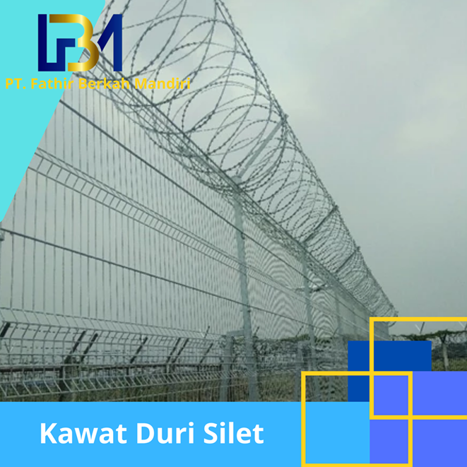 Kawat Duri Silet (Razor Wire) adalah pagar pengaman berteknologi tinggi yang terdiri dari kawat baja kuat dengan bilah silet tajam di sekelilingnya. Dibanding kawat duri biasa, razor wire memiliki daya cegah jauh lebih efektif karena bentuk silet yang sangat tajam dan sulit ditembus. Cocok untuk area yang membutuhkan tingkat keamanan tinggi.